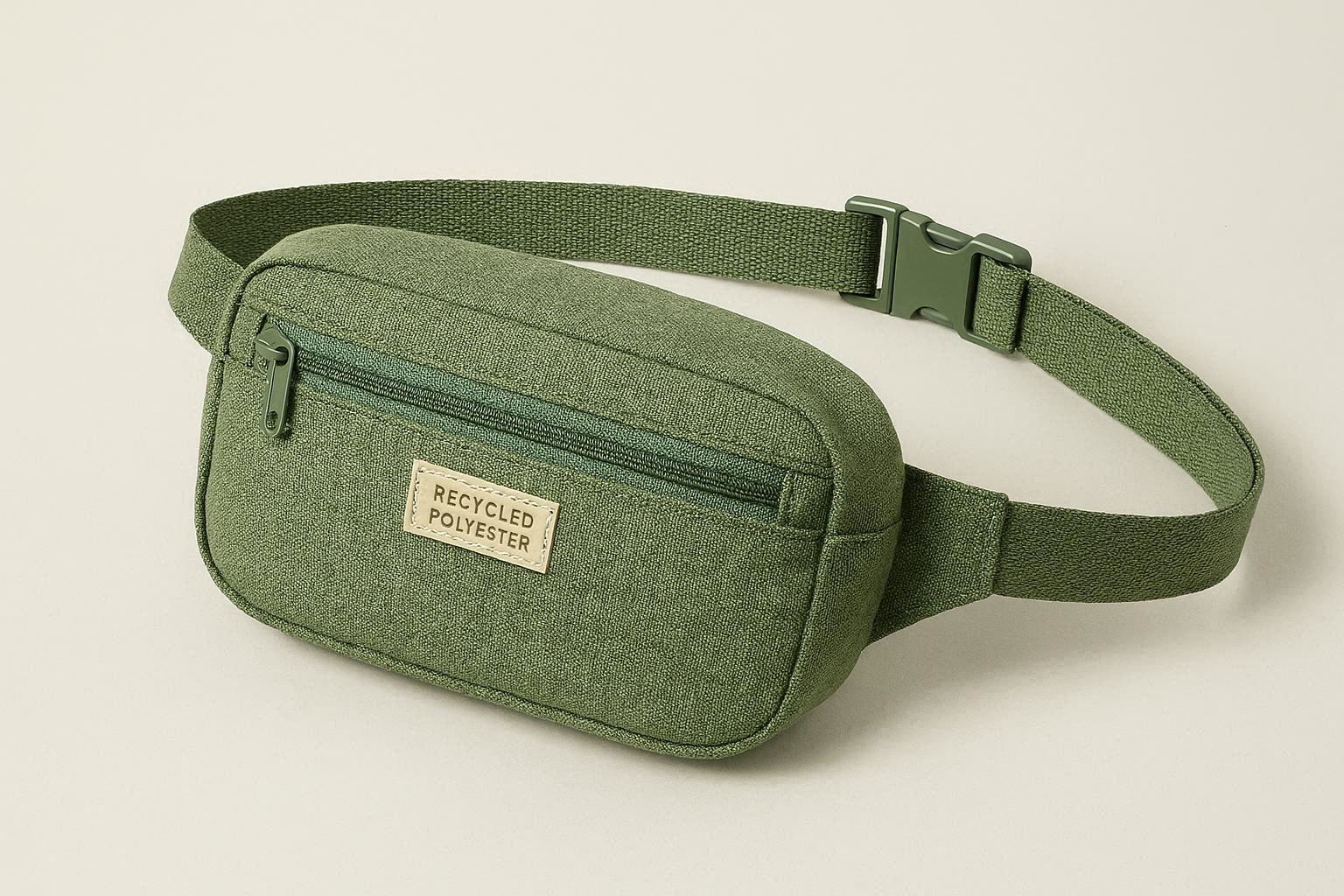Crafted from 100% post-consumer recycled plastic bottles (transformed into durable RPET fabric), this pack supports a circular economy. It features a simple, functional design with a main zippered compartment and a smaller front pocket. The adjustable strap is made from the same recycled material. Water-resistant and easy to clean. It??s the perfect choice for environmentally conscious consumers who want a practical, hands-free bag for daily use, knowing their purchase helps reduce plastic waste.